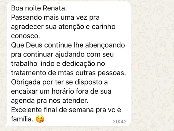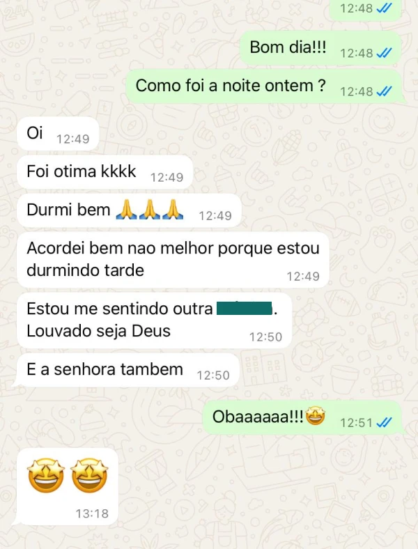O cardiologista me sugeriu o uso do CPAP e que eu procurasse um fisioterapeuta especializado em fisioterapia do sono. Foi então que eu procurei a Renata Barros que me ajudou a encontrar um aparelho e máscara de acordo com minha necessidade. Hoje faço o acompanhamento Com ela e foi assim que entramos os parâmetros ideais no aparelho. No início eu era resistente ao uso do equipamento, mas me adaptei e consegui desde a primeira noite. Antes eu dormia no máximo 5 horas por noite. Hoje ultrapasso as 8 horas quase todos os dias.